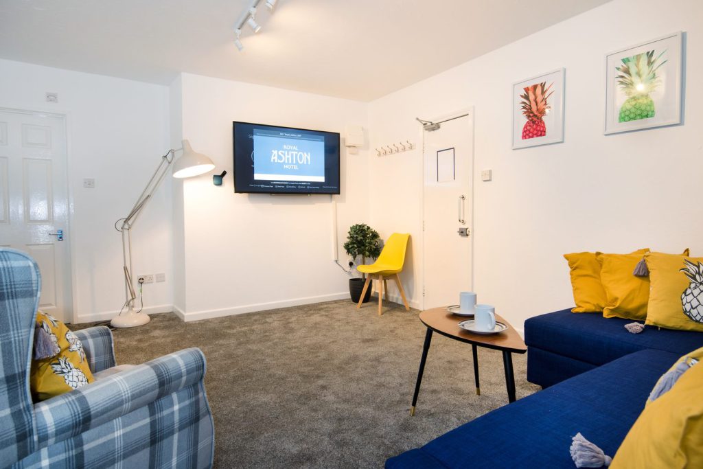 The apartment at the Royal Ashton Town House in Taunton offers comfortable, ensuite accommodation ideal for both short and long stays. It features a double bed, flat-screen Freeview TV, wardrobe, desk, fully equipped kitchen, dining space, and tea and coffee making facilities. The ensuite bath and shower room includes complimentary toiletries, with towels and bed linen provided. A travel cot is available on request.