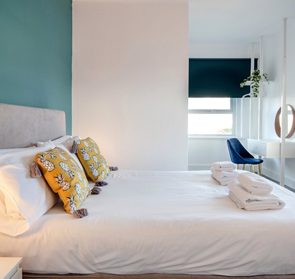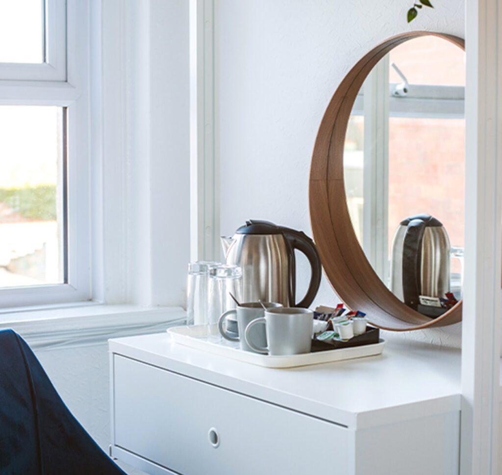 The double rooms at the Royal Ashton Town House in Taunton offer comfortable, ensuite accommodation ideal for both short and long stays. Each room features a double bed, flat-screen Freeview TV, wardrobe, tea and coffee making facilities, and a fridge. The ensuite shower room includes complimentary toiletries, with towels and bed linen provided.